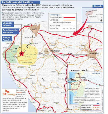 Это конечно с одной стороны хорошо, а вот с другой не очень. Рядом с будущим НПЗ национальный парк Пакоче, может это хоть сыграет какую то роль в соблюдении технологий для сохранения экологии тех мест. А в Манте химическую промышленность плохо себе представляю,здесь всё таки на первом месте тунец, а какой нормальный тунец будет плавать у берегов с химическим сливом?Увеличить грузоперевозку можно и без такой вот тотальной индустриализации! Эквадор на сегодняшний день одна из редких стран, чья территория практически состоит из заповедников, разрушить можно всё и очень быстро,но восстановить будет невозможно. И зачем курортный город (претендует на это звание) так, пардон "засирать" промышленными объектами. НПЗ строят почти в пустыне, как они будут "обыгрывать" всякие разгрузки с моря не затрагивая экологию не представляю, хотя горячо уверяли что так оно и будет, не затронут, поживём , увидим.